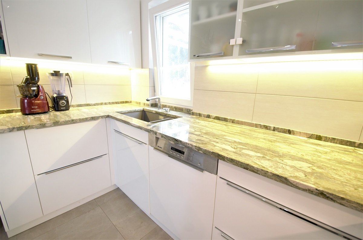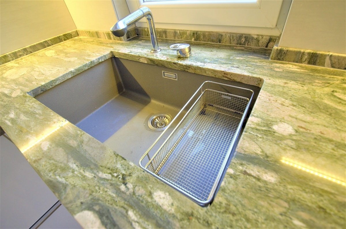 Jedan od najzahvalnijih materijala za održavanje, apsolutno otporan na toplinu, vlagu, ogrebotine, udarce i kemikalije. Kamene ploče nudimo s raznim profilima rubova, a postoji mogućnost izrade kamenih sudopera i umivaonika od istog materijala. U ponudi imamo širok izbor granita i mramora.