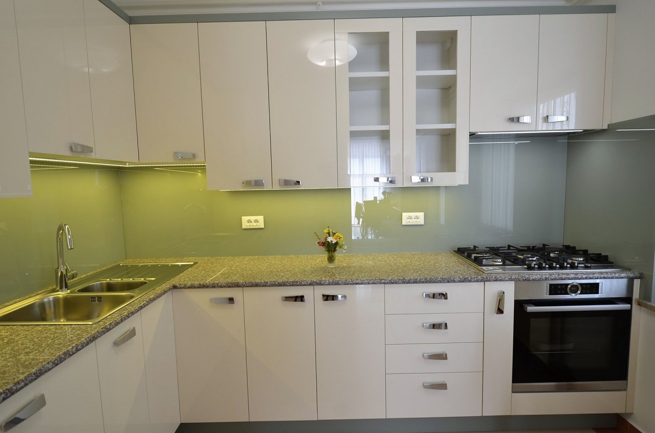 Staklena zidna obloga Vašoj kuhinji daje inovativan izgled i štiti zid od prljanja. Zid se iza stakla može obložiti kamenom, kamenim furnirom ili fototapetom. Također, možemo izraditi posebne panele prema vašim idejama i u suradnji s dizajnerom, kao npr. mozaik od oblutaka ili neki uzorak.